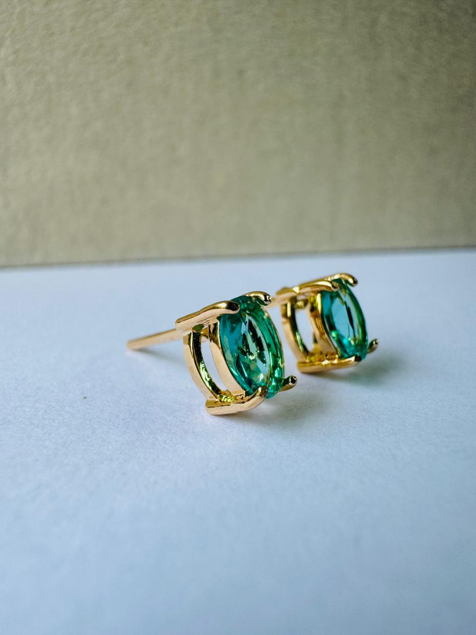 Delicado e sofisticado, o Brinco Pequeno Verde Esmeralda em Banho de Ouro é a escolha perfeita para quem aprecia elegância em detalhes sutis.