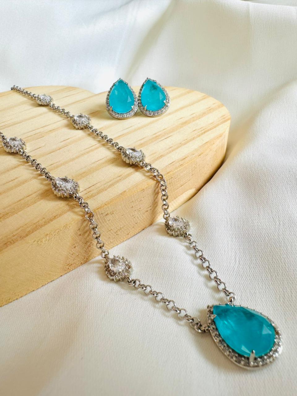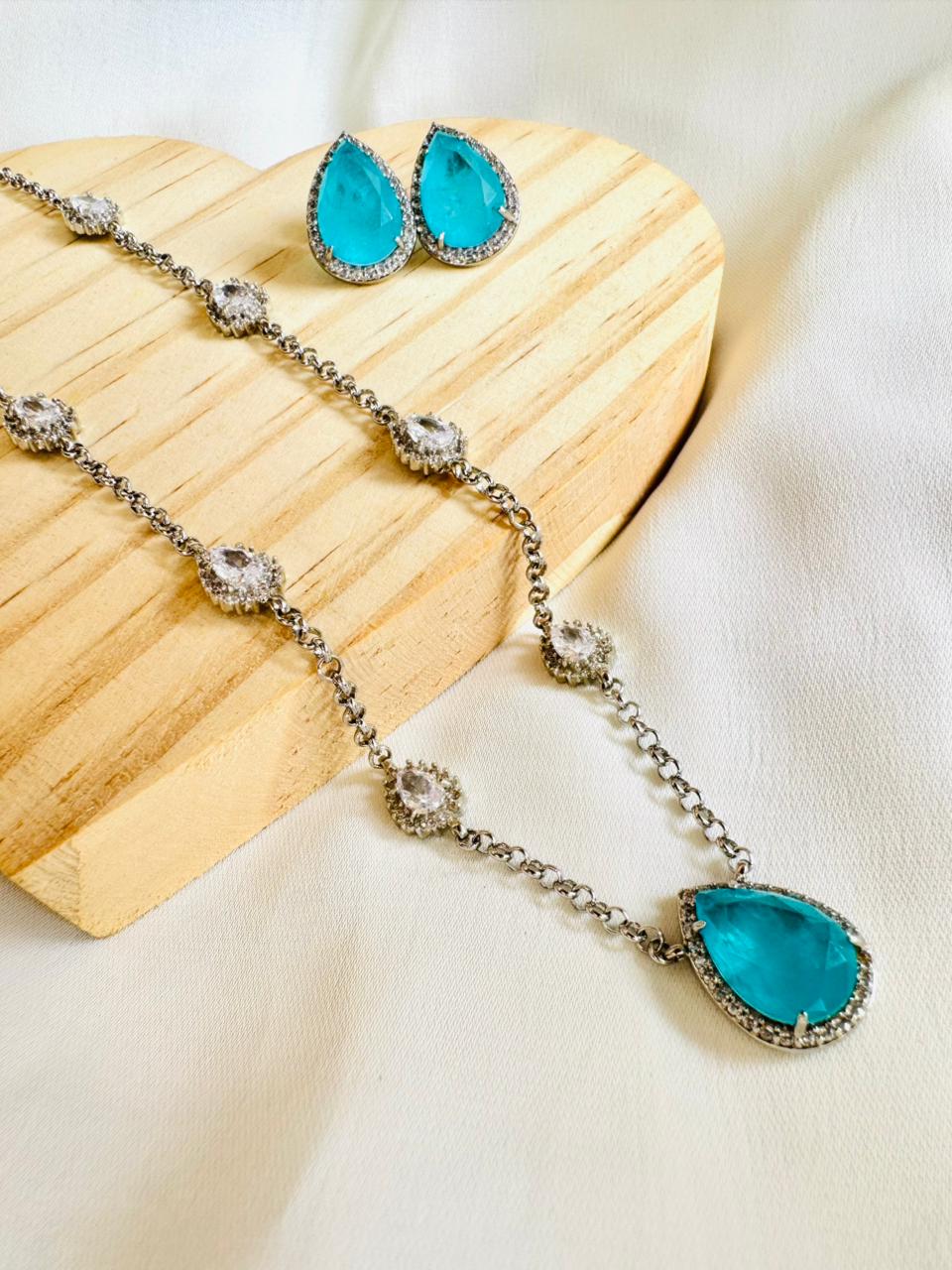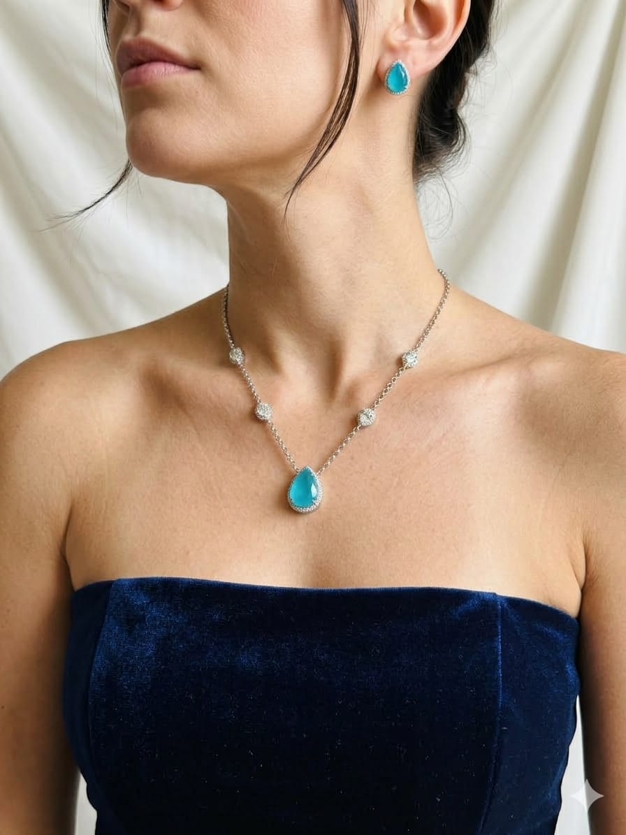 Elegante e atemporal, o Conjunto de Colar e Brinco em Zircônia Azul Cristal foi criado para mulheres que apreciam sofisticação aliada a um brilho delicado e marcante.