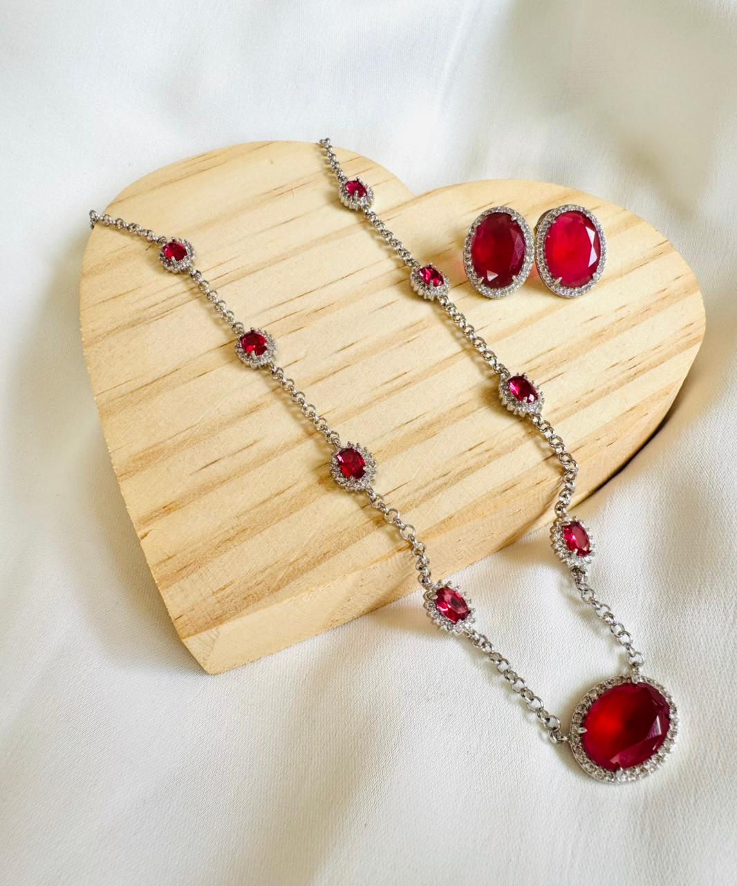 O colar apresenta pedras rubelita ao longo de toda a sua extensão, cuidadosamente intercaladas e contornadas por zircônias brancas, criando um contraste luminoso e harmonioso que valoriza ainda mais a tonalidade intensa da pedra principal. Seu design refinado traz brilho contínuo e acabamento impecável.