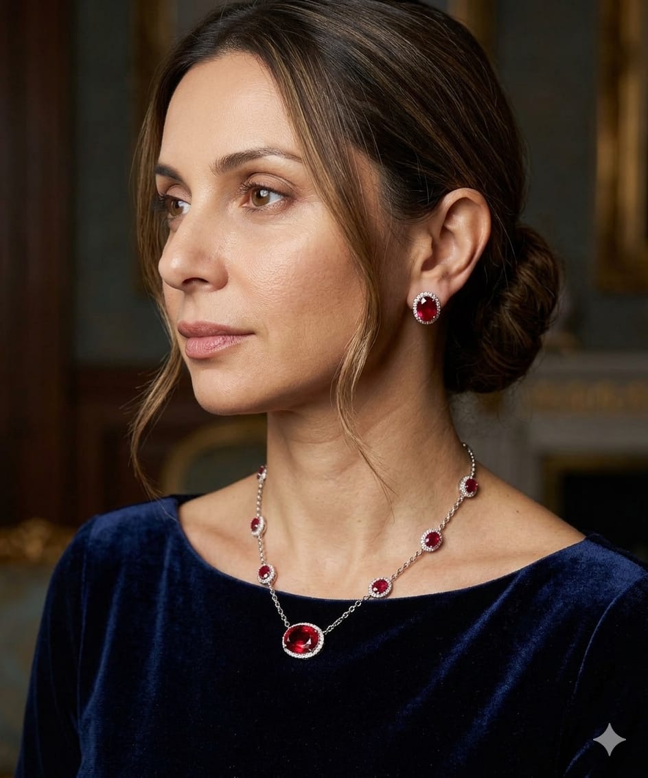 Elegante e marcante, o Conjunto de Colar e Brinco com Pedra Rubelita foi criado para mulheres que apreciam sofisticação aliada à delicadeza dos detalhes.